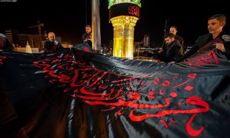رفع راية الحزن بمناسبة قرب ذكرى جرح واستشهاد الامام علي (ع)